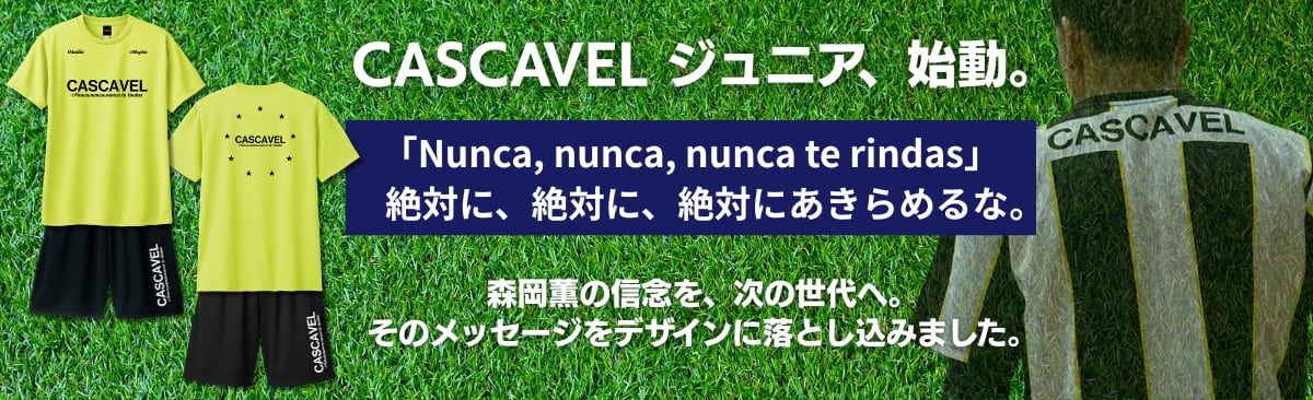【CASCAVEL ジュニア、始動。ここから。】 ◆ ジュニア メッセージプラシャツ ◆ 森岡薫からジュニア世代へ。 「Nunca, nunca, nunca te rindas」 ── 絶対に、絶対に、絶対にあきらめるな。 Osadía(勇敢) Alegría(喜び) 現役生活を通して大切にしてきた言葉を、デザインに落とし込んだ一枚。 うまくいかない日もある。 悔しい日もある。 それでも、あきらめない。 勇敢に挑み、プレーを楽しむ。 日々のトレーニングはもちろん、移動着としても着用できる、吸汗速乾素材のプラシャツです。 品番:CA-SJ1 素材:ポリエステル100% 機能:吸汗速乾 / UVケア サイズ:130 / 140 / 150 【ボディについて】 スタンダードなシルエットにセットインスリーブを採用しクセのない着心地となっております。(詳細はサイズ表をご覧下さい) 表地はフラットな編み地、肌と接地する裏面はメッシュ構造となっており、通気性と吸水速乾性を持ち、汗冷えとベタ付きを軽減します。 生地は、ドライ素材において、快適でその上、半袖プラシャツとしてしっかり感を実感出来る4.4onzを採用しております。 【サイズ】 130 身丈52 身巾38 肩幅36 袖丈16 140 身丈56 身巾40 肩幅38 袖丈17 150 身丈59 身巾42 肩幅40 袖丈18 ※画像はあくまでもイメージです。 都合により若干変更する場合がございます。